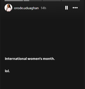 Orode Uduaghan post, tagged “International Women’s Month. Lol,” drew mixed responses: